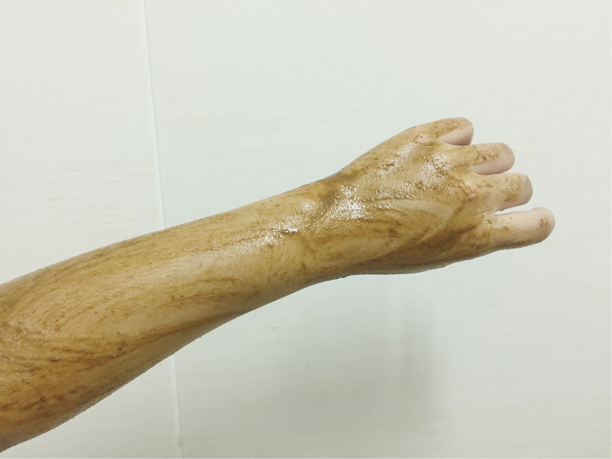 เมื่อถูๆนวดๆขัดๆจนทั่วตัวแล้ว ก็ถึงเวลาล้างออกค่ะ ล้างด้วยน้ำเปล่าแล้ว มันจะยังเป็นสีเหลืองๆติดผิวนะคะ ก็มาถึงตาของพระเอกของเราทำหน้าที่