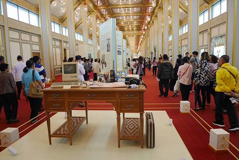 ข้างพระเมรุเป็นนิทรรศการ ในภาพเป็นโต๊ะทรงงานของรัชกาลที่ 9 ครับ