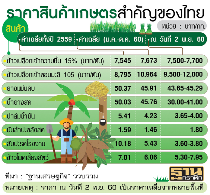 ตรวจแถวราคาสินค้าเกษตร ข้าว ยาง มัน ปาล์ม สับปะรด ข้าวโพด ร่วงยกแผง! ทุบกำลังซื้อรากหญ้าปลายปีหด ธุรกิจภูธรโอด ยอดขายซบสวนทางเศรษฐกิจโต 3.8% จี้รัฐแก้ปัญหา ม.หอการค้าฯ ชี้ทำเสียโอกาสจีดีพีโต 0.5%
