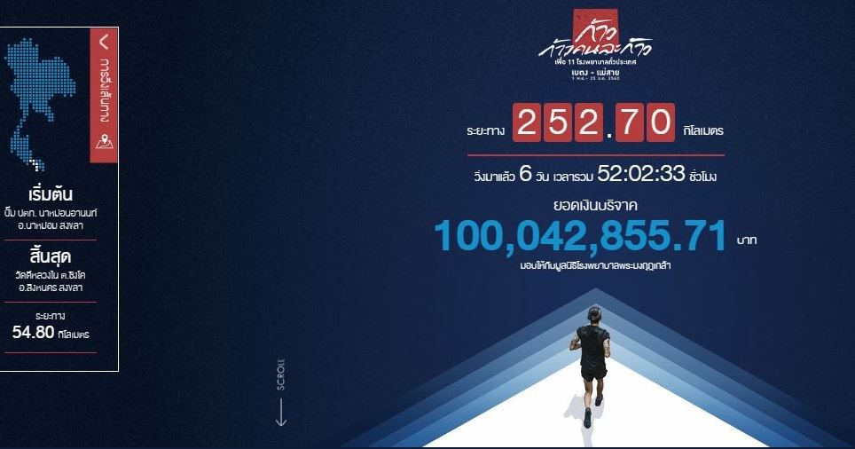 ค่าแห่งน้ำใจ:"ตูน"วิ่งถึงหาดใหญ่ยอดเงินบริจาคทะลุ100ล้านบาท