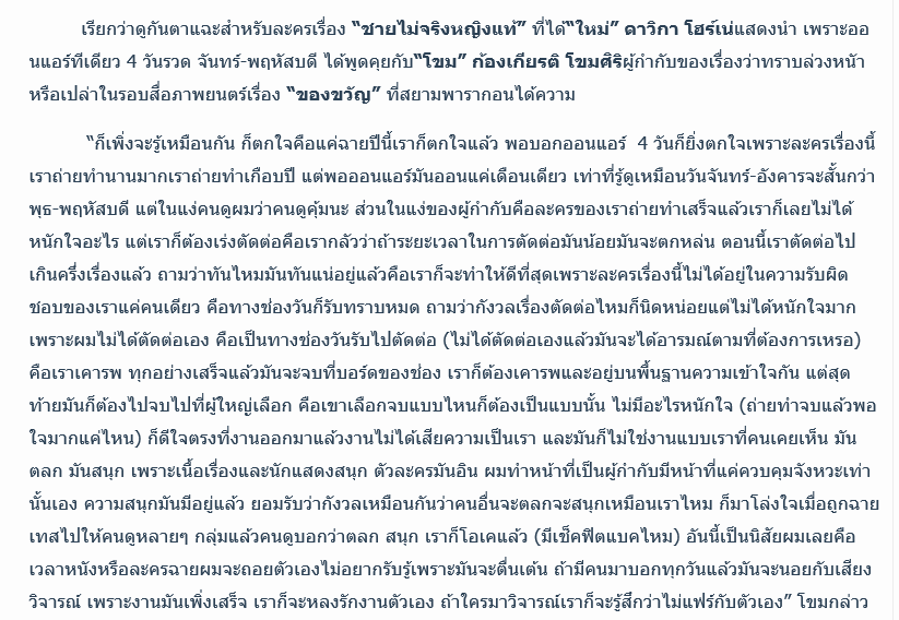 ผกก ให้สัมว่า พ-พฤ ออนแอร์ยาวกว่า จ -อ และ ออนแค่เดือนเดียว