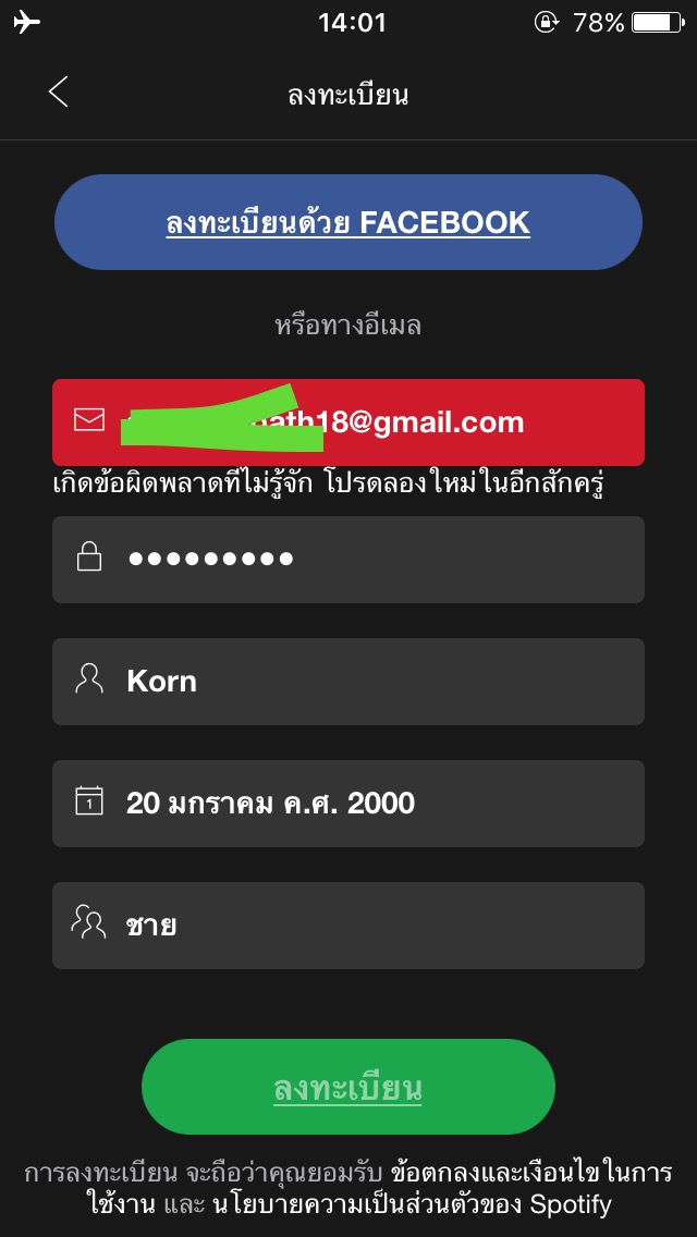 ลงทะเบียนSpotifyไม่ได้ทำยังไงครับ