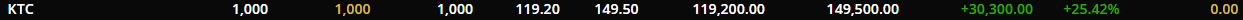 ชื้อหุ้น KTC ไว้ช่วงดัชนี1700 เห็นบริษัทเติบโตต่อเนื่องดีปีละ 10-15% เลยคิดว่าบริษัทแบบนี้ควรจะชื้อขายกันที่ PE 15เท่าเป็นอย่างน้อย