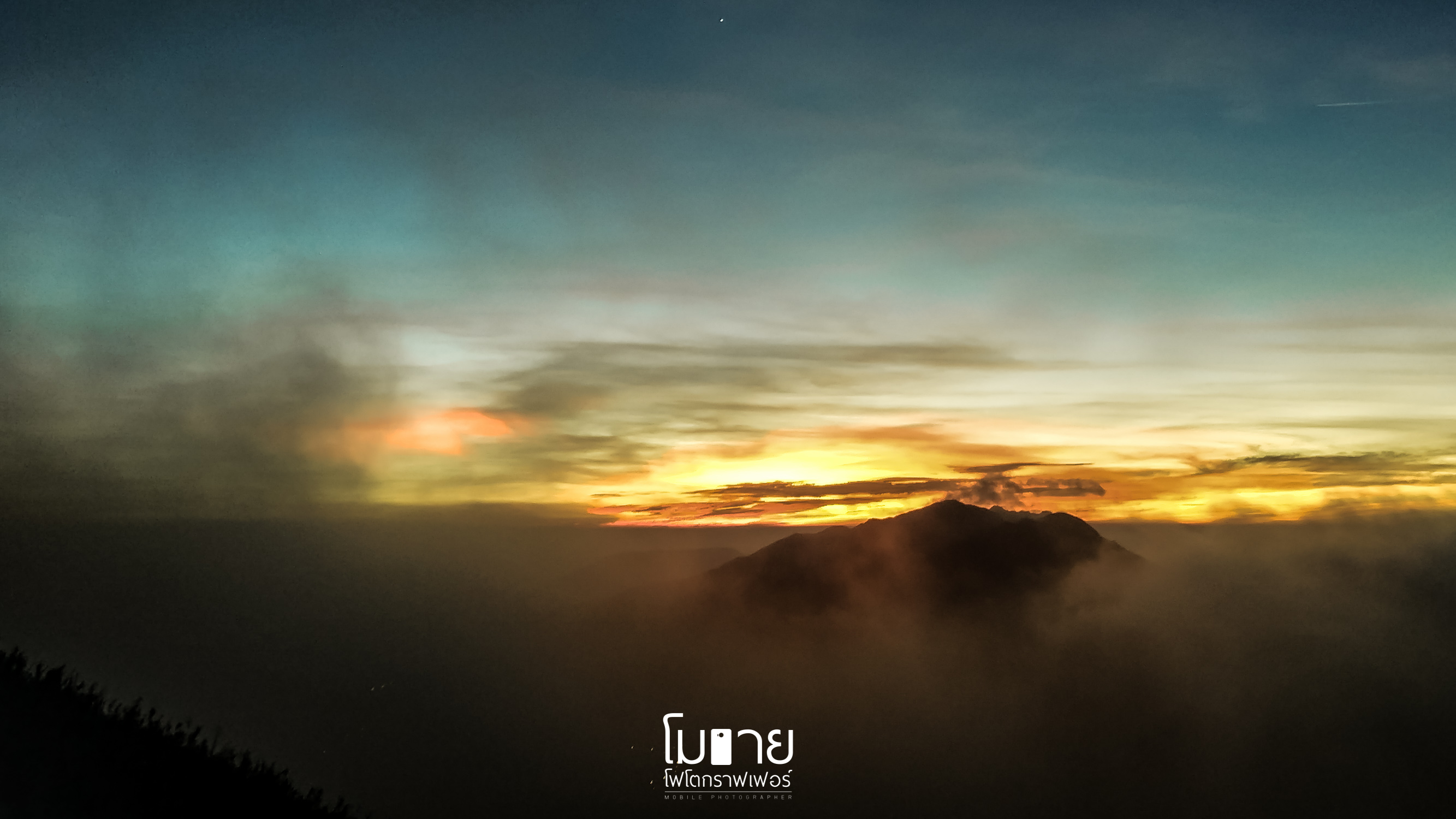 แสงอาทิตย์กำลังค่อยๆ สว่างขึ้นทำให้เห็นบรรยากาศของยอดเขาได้อย่างชัดเจน