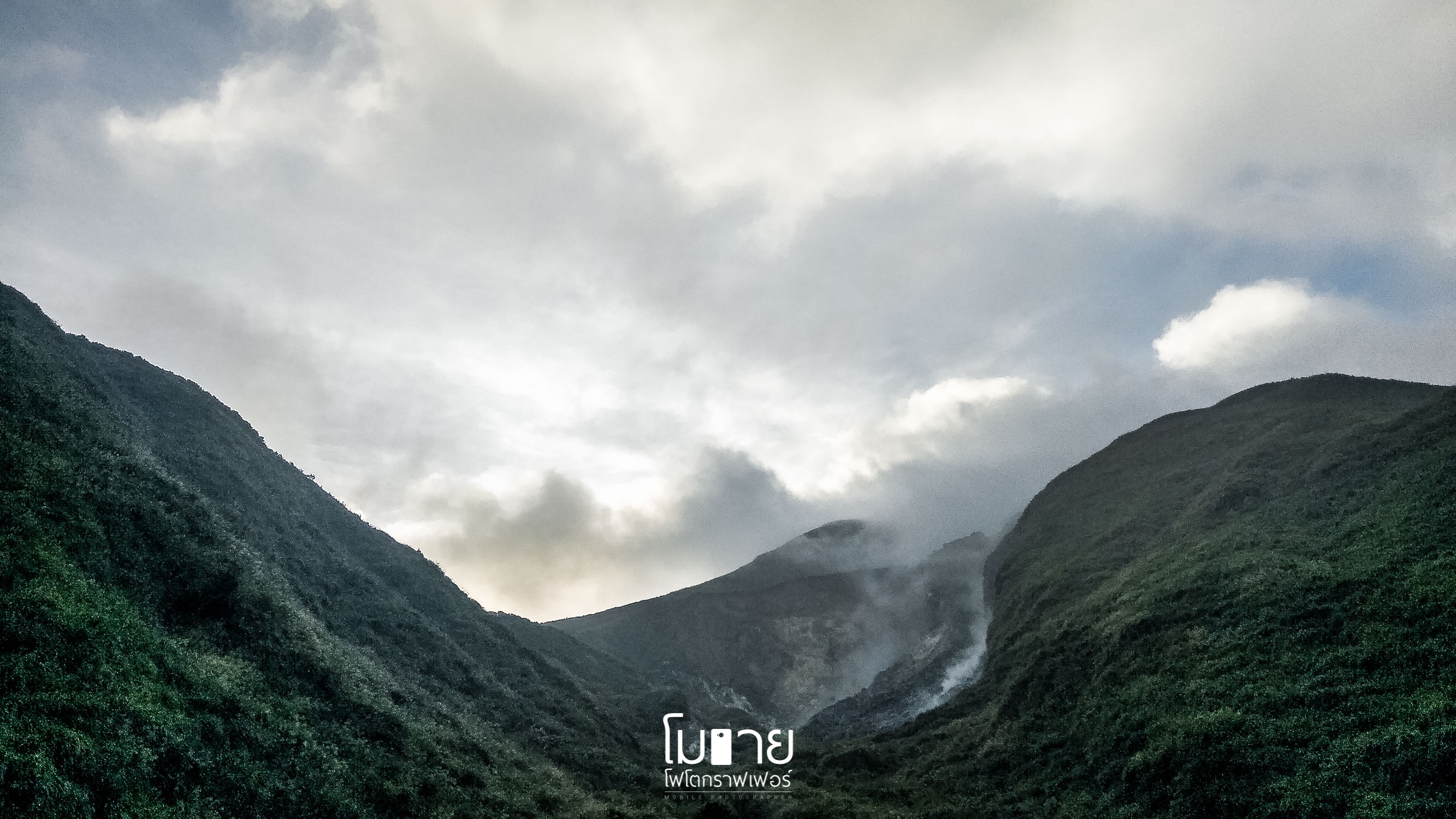 พอลงมาด้านล่าง ก็มีอีกจุดที่สามารถจะถ่ายช่องเขา ที่ยังมีกำมะถันลอยขึ้นมาอยู่ตลอดได้ เพราะว่าพื้นที่ตรงนี้