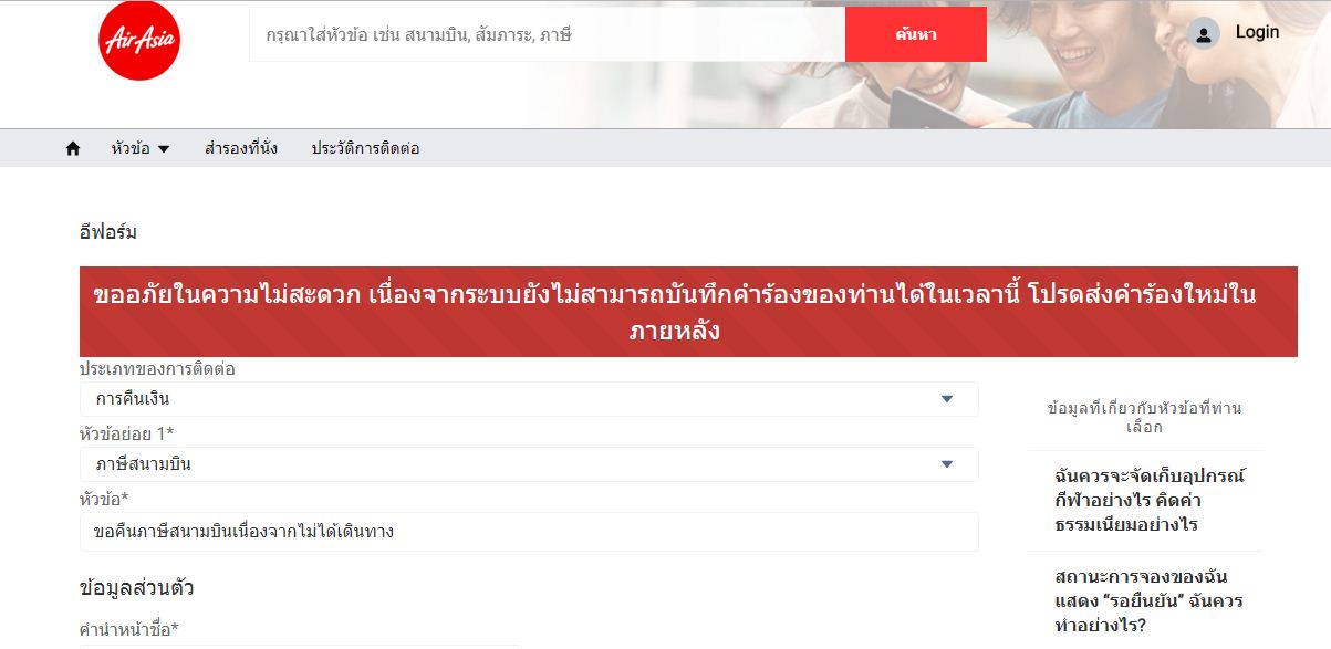 ข้อขัดข้องจากการขอคืนภาษีสนามบิน กรณีไม่ได้เดินทาง