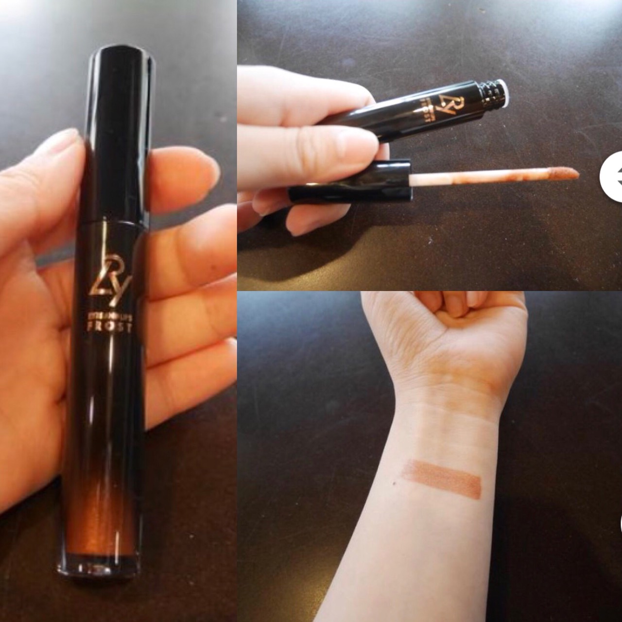 ชิ้นถัดมาคือ lry eyes & lip frost ตัวนี้เป็นไอเทมใหม่ที่เพิ่งได้มาลองใช้ เป็นตัวที่ใช้ได้สำหรับทั้งดวงตาและริมฝีปาก โดยเนื้อลิปเป็นเนื้อเมทัลลิค ตัวเนื้อสีแน่นมาก สีสวยมากกก เราซึ่งเป็นคนปากแห้งมากทาแล้วก็ไม่เป็นขุยหรือเป็นร่องนะ ชอบๆๆๆ ตัวนี้เราไว้ทาสลับกับตัวอุทัยทิพย์ วันไหนที่ไม่ได้แต่งหน้าเลยเราก็จะใช้อุทัยทิพย์แต้มๆเพื่อไม่ให้หน้าดูจืดเกินไป แต่วันไหนที่เราแต่งหน้าเราก็จะเลือกหยิบตัวนี้มาทาเพราะอยู่ทนดีจะแต่งแบบใสๆหรือจะแต่งแบบจัดเต็มก็เอาอยู่ ไม่ต้องคอยเติมบ่อยๆด้วย และที่สำคัญตัวนี้สามารถใช้ทาตาได้ด้วยเริ่ดๆ สีสวย มีกลิตเตอร์ผสมเล็กน้อย พอให้ฉ่ำๆ ทำให้การแต่งหน้าของเราง่ายขึ้นเยอะ ใช้ตัวนี้ตัวเดียวทาให้ทั่วเปลือกตาและตามด้วยสีดำหรือน้ำตาลเข้มที่หางตา กรีดอายไลเนอร์สักนิด ก็กลายเป็นลุคซอฟสโมกกี้อายเบาๆแล้ว อีกอย่างที่ชอบคือ lry สีชัดมาก เม็ดสีแน่น บางยี่ห้อนี่ทาไปหลายรอบยังรู้สึกสีไม่ค่อยชัดเลย แต่ตัวนี้โอเคค่ะ ระหว่างวันก็ไม่เลอะไม่เยิ้มติดทน เราเลยจัดให้เป็นตัวขึ้นแท่นของเราไปเลยยยย