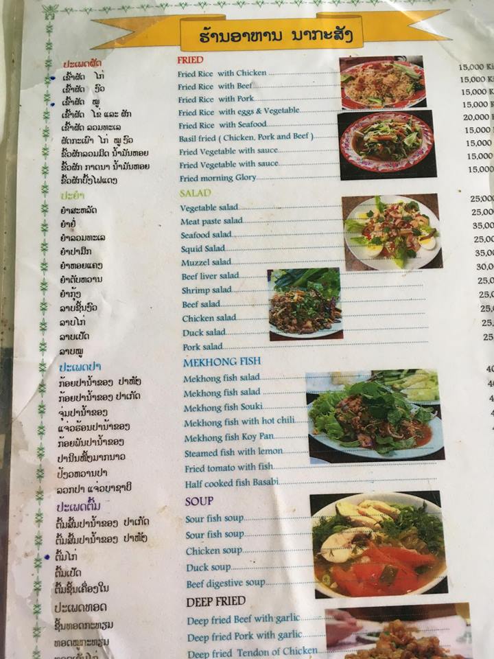 4. อาหารที่ลาวนั้นแพงกว่าที่ไทยประมาณ 2 เท่าได้แต่ปริมาณก็ถือว่ารับได้ครับ เช่นกะเพราบ้านเราจะตกประมาณ 35-45 บาท แต่ที่ลาวนั้นจะ 60-80