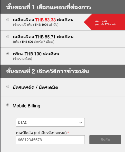100 บาท/เดือน ชำระเงินด้วยบัตรเครดิต/เดบิต