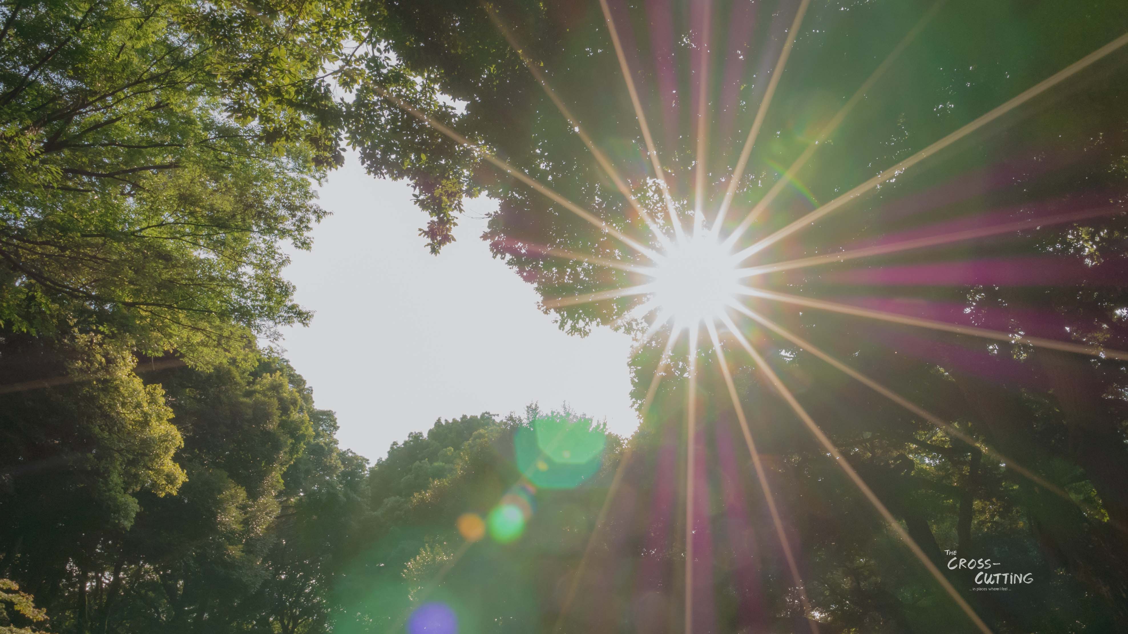 แสงแดดที่สาดส่องจากท้องฟ้า ลอดผ่านร่มเงาของใบไม้ในฤดูร้อน