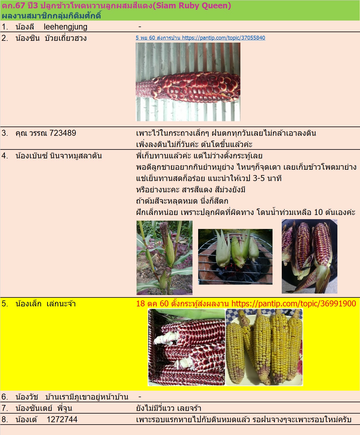และจากรายนามเพื่อน ๆ ที่เข้าคก. 67 ปี 3 เกมเพาะปลูกเมล็ดข้าวโพดแดง