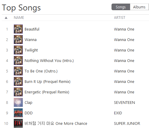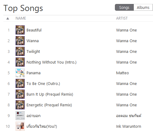 Wanna One มาเพื่อล้างชาร์ตจริงๆ และเพลง Beautiful - Wanna One นอกจากจะได้อันดับ #1 ในชาร์ต K-POP แล้ว