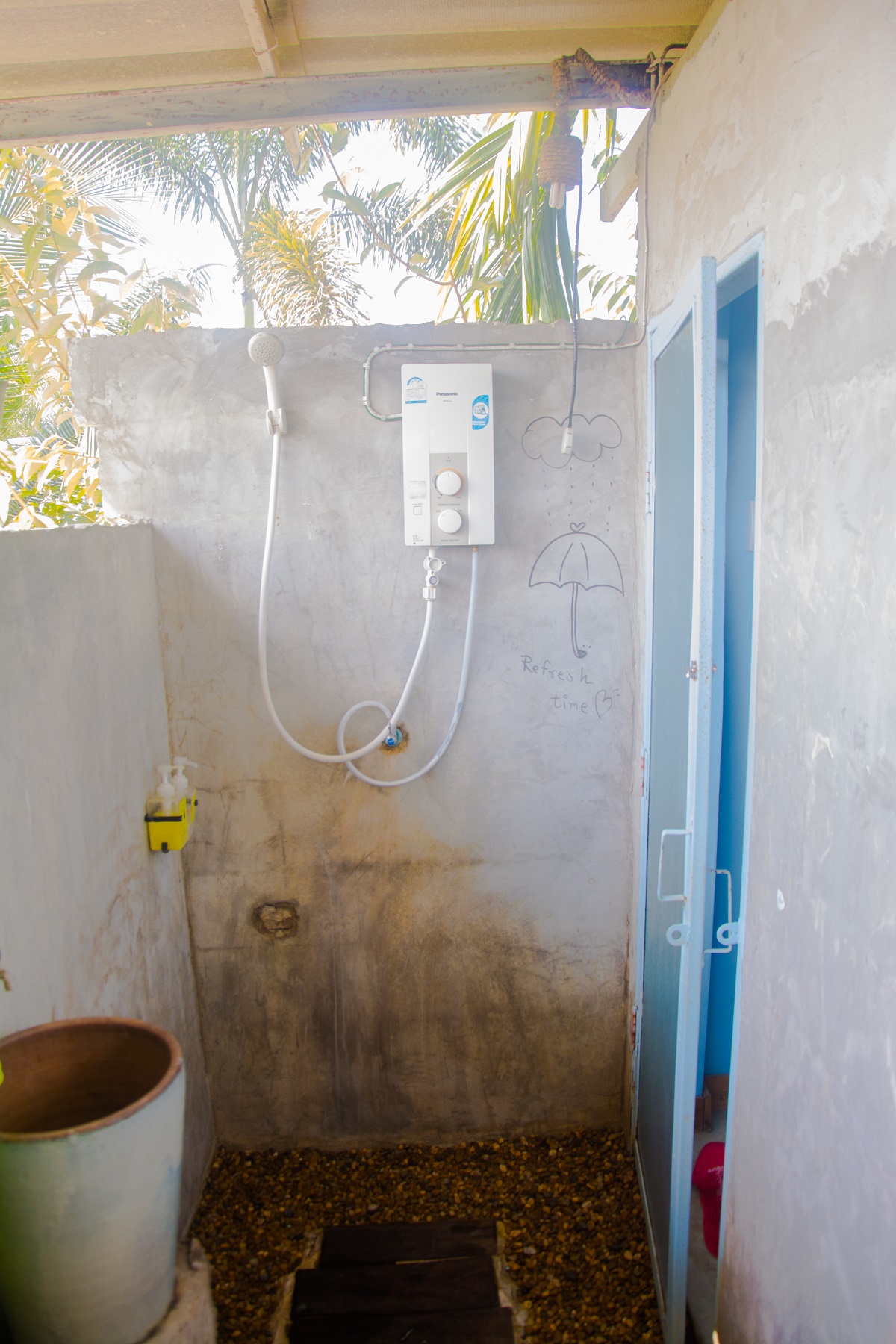 อันนี้เป็นห้องน้ำครับ เรียกว่าเป็นบรรยากาศที่แปลกใหม่เลยสำหรับผม อาบน้ำไปลมก็เย๊นเย็นไป