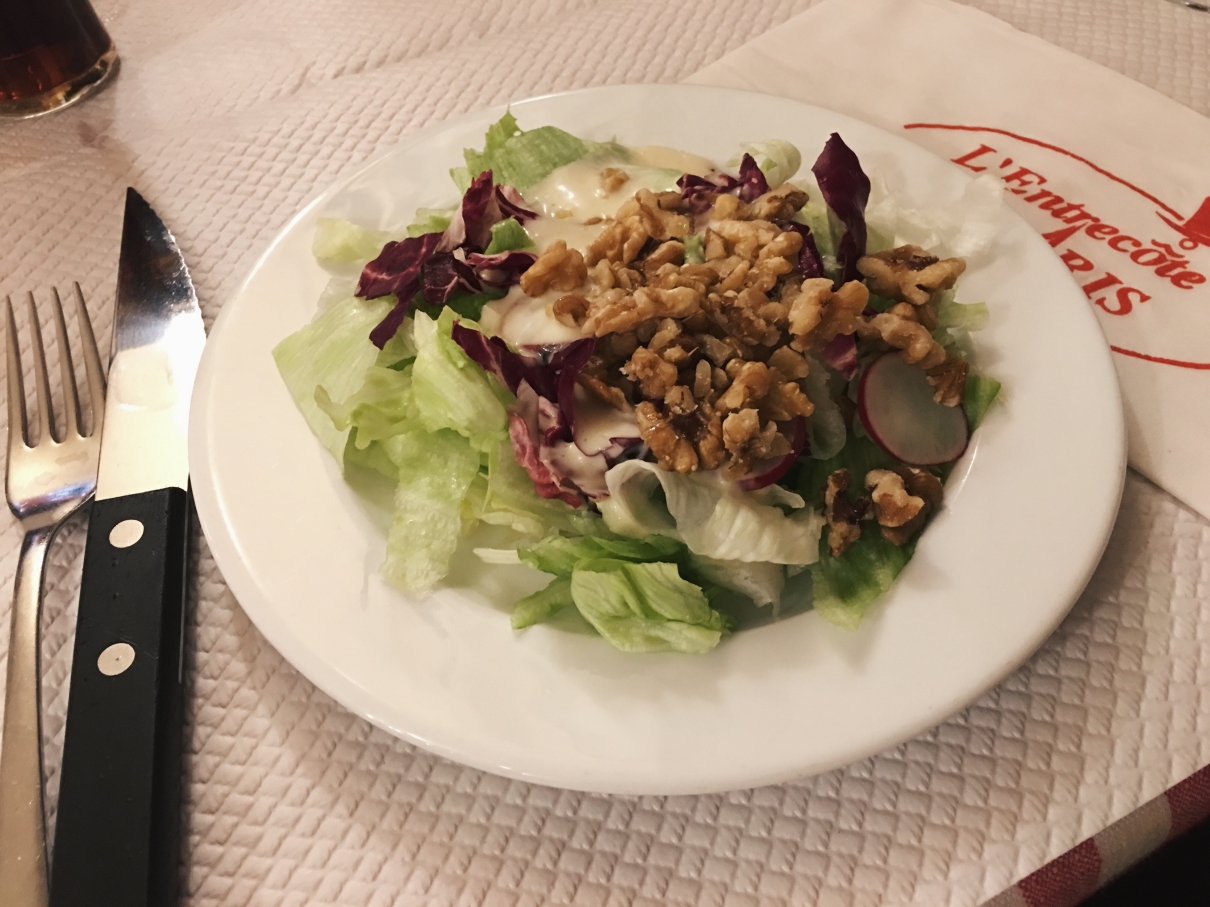 Entree ก็จะเริ่มเสิร์ฟด้วยสลัด walnut ก่อน เริ่มด้วยเมนูเบาๆก่อนจะหนัก main course สลัดนี่ก็ของโปรดเราอยู่แล้ว กวาดเกลี้ยงไม่เหลือเลย เพื่อนไม่กินวอลนัท เอาม๊าาาากินเอง ต่อมาก็ main course ตอนสั่งก็สั่งได้ว่าอยากได้ความสุกระดับไหน นี่ขอ medium ไป แต่ถ้าเป็นระดับความสุขขอเยอะๆเลย แฮ่