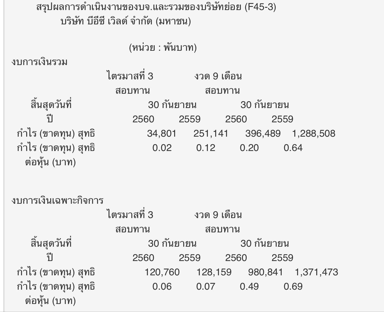 งบ BEC มาแล้ว สุดยอดเลย