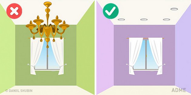 หากไม่ใช่บ้านที่เพดานโปร่งเป็นพิเศษ การเลือกใช้โคมไฟแขวนติดฝ้าเพดานจะทำให้ห้องดูแคบมาก ทางที่ดีควรเลือกใช้ไฟสปอร์ตไลท์ติดผนังจะดีกว่านะ