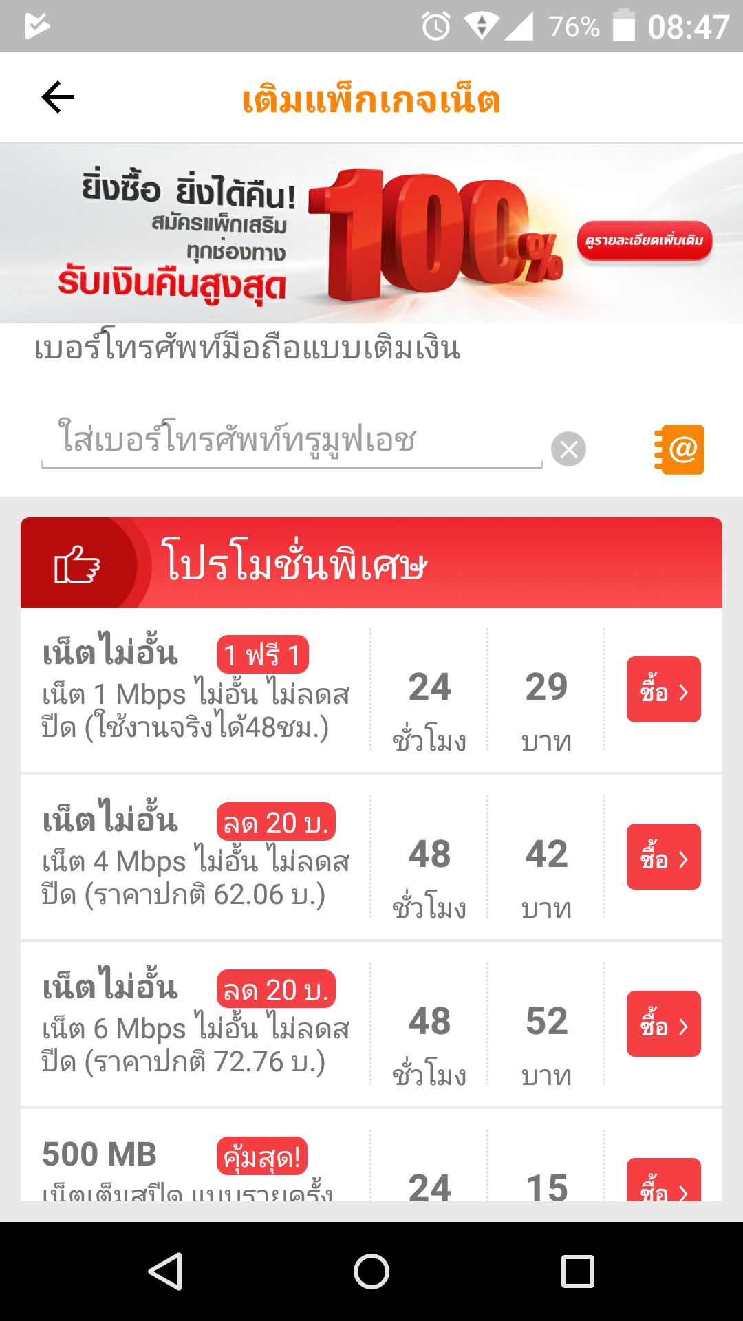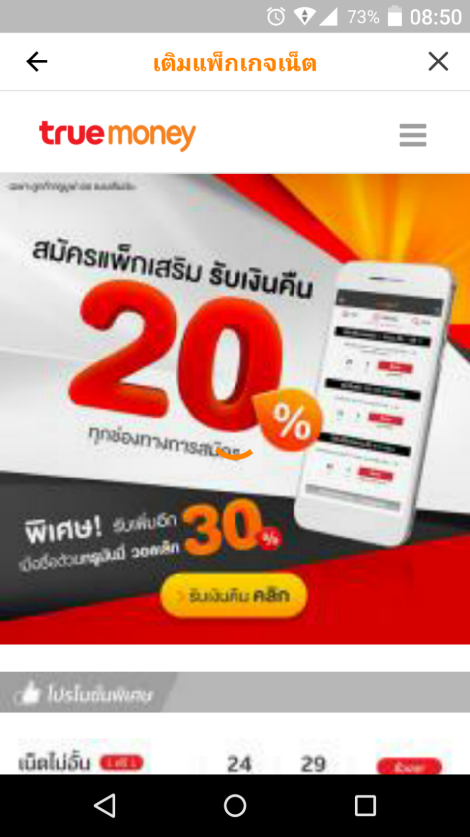 โปรเสริม6mbps48ชั่วโมงลด20บาทจะได้เงินคืนผ่านtrue wallet อีก50%หรือป่าวครับ