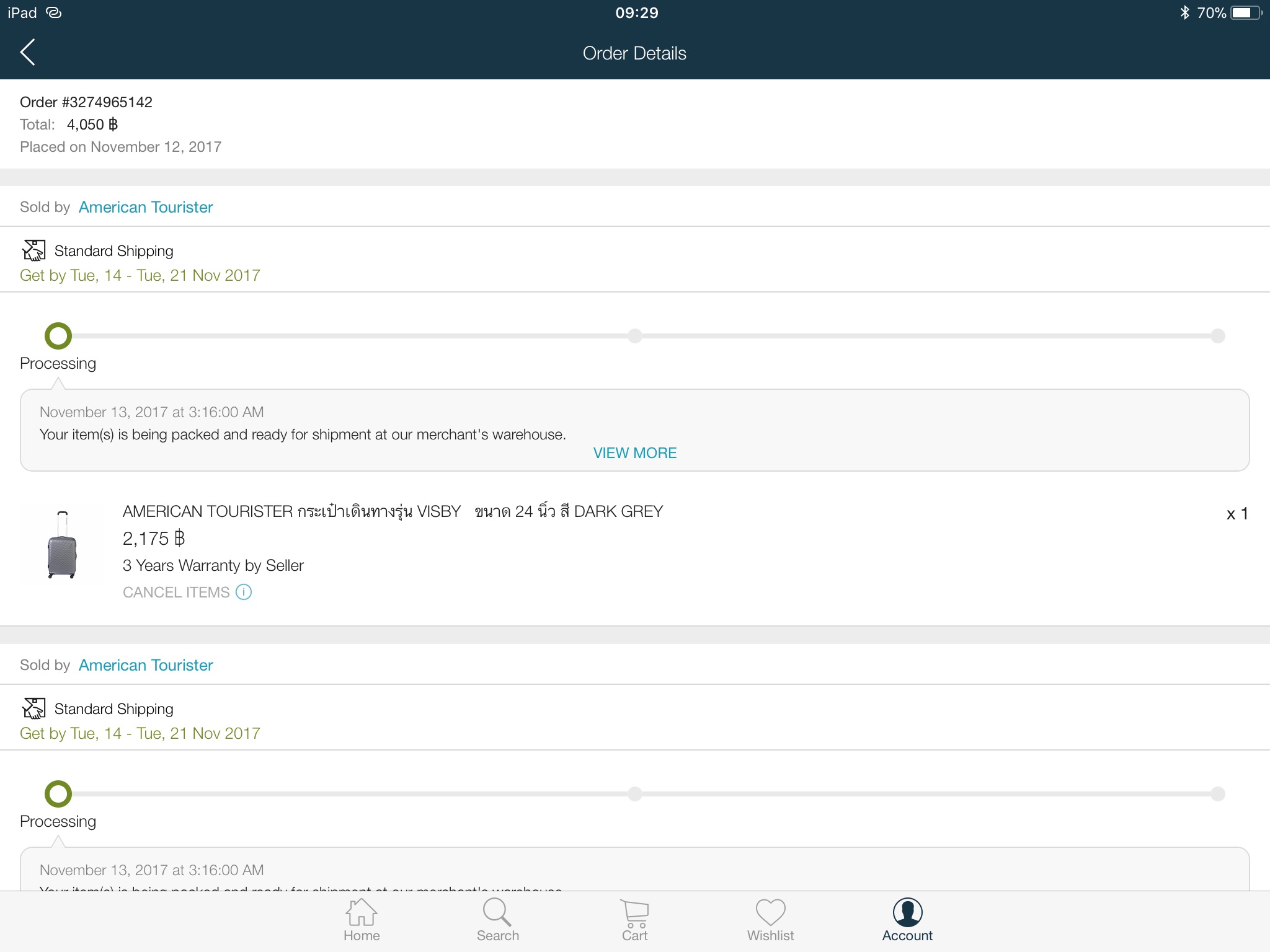 สั่งซื้อสินค้ากับทาง Lazada ตั้งแต่วันที่ 12 พฤศจิกายน 2560 เวลาประมาณห้าทุ่มกว่า