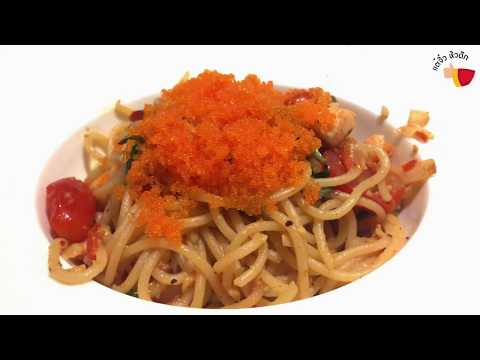 เริ่มเข้าสู่จานหลัก "สปาเกตตี้ผัดพริกแห้งและไข่กุ้ง"
