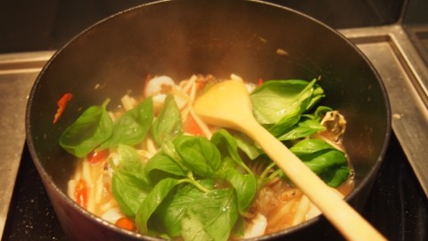 ทิ้งไว้ให้เดือดปุดๆจนเกือบสุก แล้วปรุงรสด้วยน้ำตาลเล็กน้อยและน้ำปลา