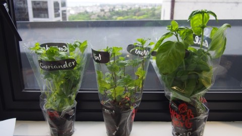 เราปลูกพวกกะเพรา ใบมิ้นท์ และผักชีไว้เอง