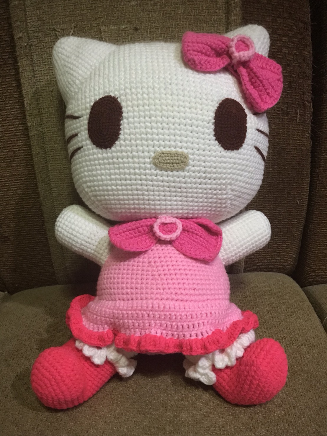 ส่งต่อ มือหนึ่ง ตุ๊กตาถัก คิตตี้ น่ารักๆ ในราคา 450 บาทรวมส่ง