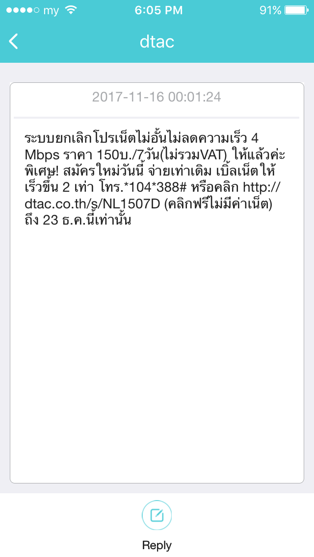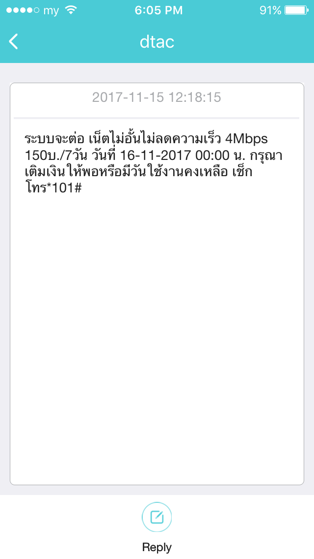 ข้อความที่ถูกส่งมาเตือนให้เติมเงินจะไม่มีบอก แต่ข้อความยกเลิกกลับมีบอก