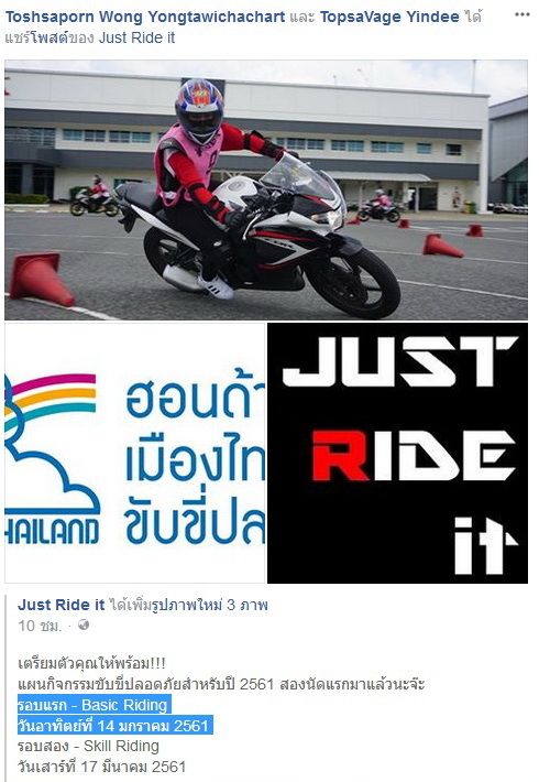แค่จะมาบอกว่าวันนี้ไปอบรมขับขี่ปลอดภัยกับฮอนด้ามา