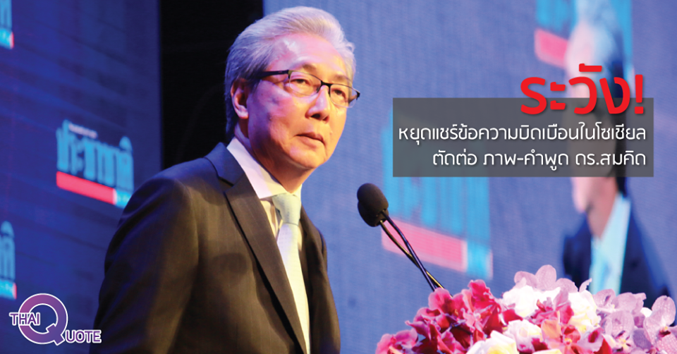 ระวัง! หยุดแชร์ข้อความบิดเบือนในโซเชียล ตัดต่อ ภาพ-คำพูด ดร.สมคิด