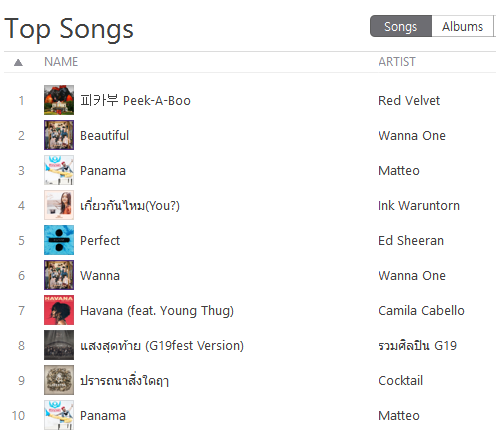 [K-POP] รายงานชาร์ต Top 10 K-POP Songs Apple Music & iTunes Store Thailand (17-Nov-17)