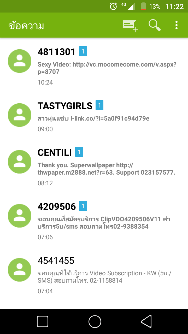 ข้อความ SMS ที่ถูกคิดค่าบริการ