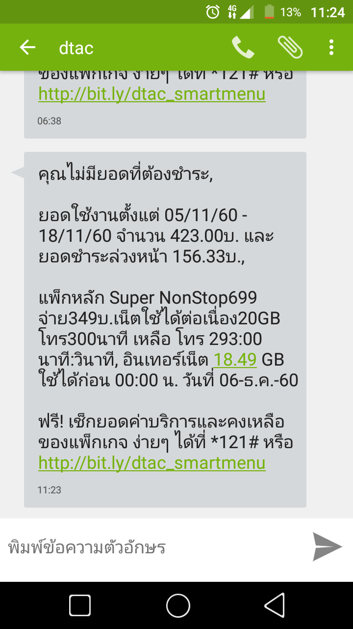 ลองเช็คค่าโทรดู (*121#) ปรากฎว่าเหมือนจะมีค่าโทรเพิ่มขึ้นเยอะมากเลยค่ะ รบกวน Dtac ช่วยแก้ไขให้ด้วยนะคะ