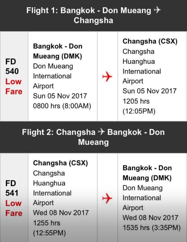 5 Nov 2017 (ดอนเมือง - ฉางซา – จางเจียเจี้ย)