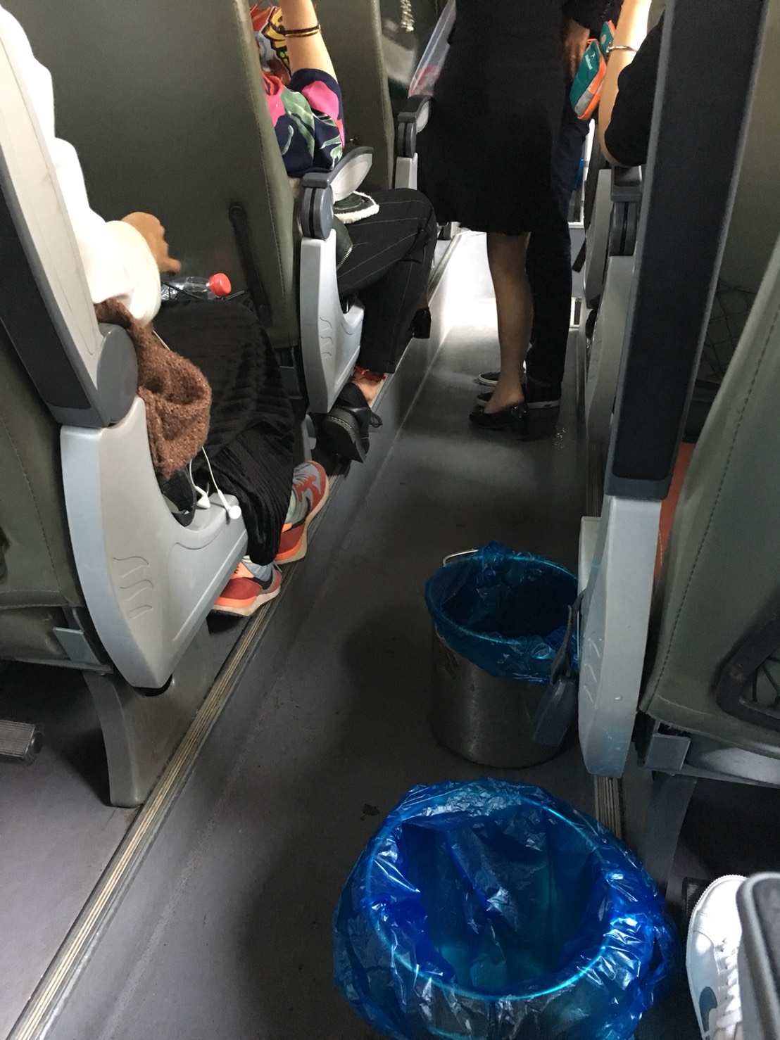บนรถมีถังขยะวางไว้ให้ค่ะ เกือบทุกที่นั่ง