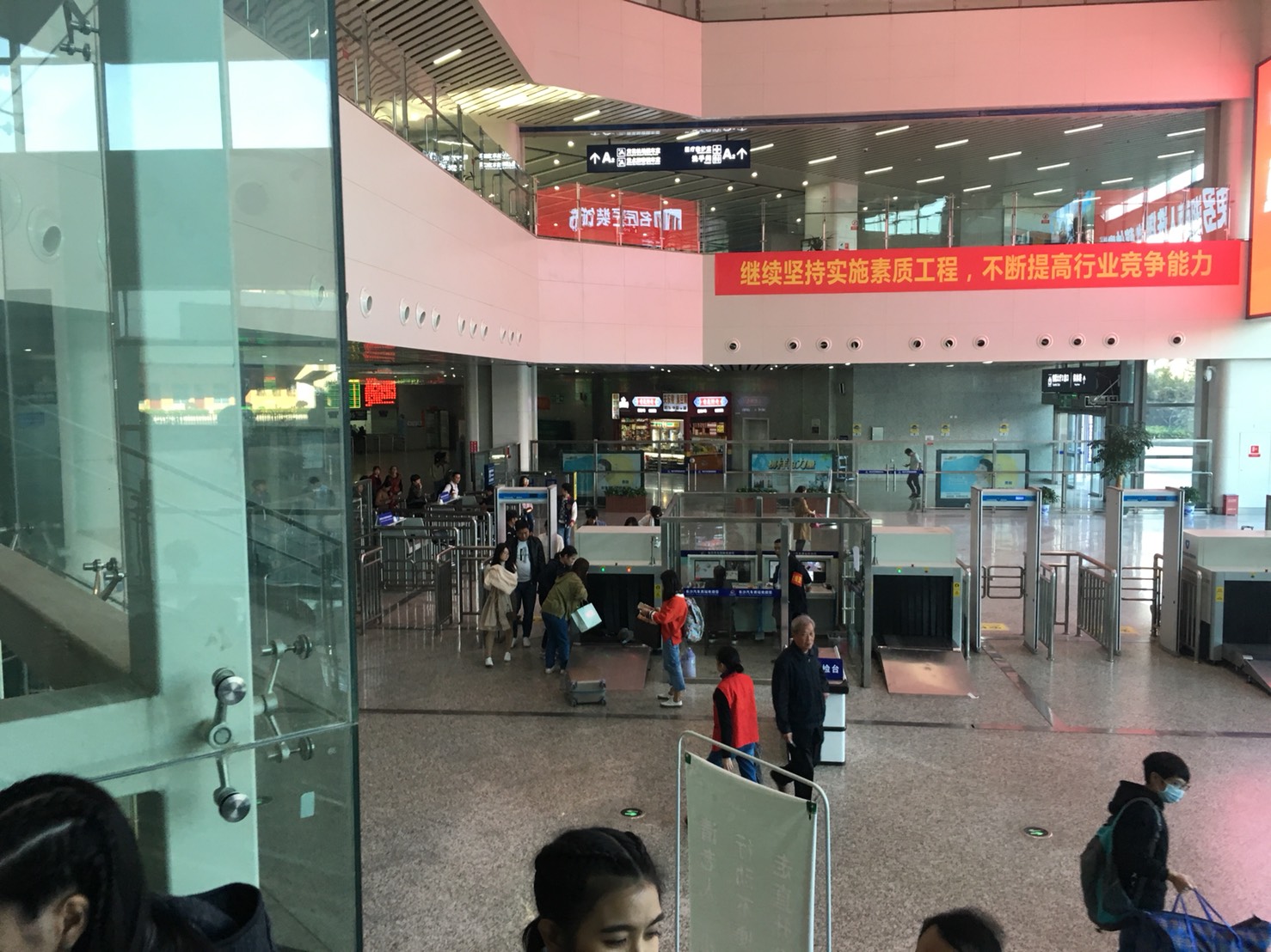 จะมีคนเดินมารุมพูดภาษาจีนใส่เดาว่าน่าจะเป็นคนขับรถแท็กซี (เหมือนตอนเราลงรถทัวร์ที่หมอชิตหรือสายใต้บ้านเรา) ไม่ต้องสนใจค่ะเซิ้ดใส่แล้วเดินลงบันไดเลื่อนไป 1ชั้น เดินเข้าประตูไปแล้วเดินไปทางขวาจะเจอช่องขายตั๋ว