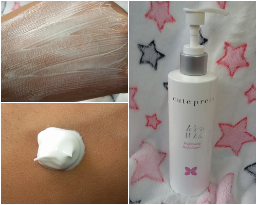 เป็นครีมโลชั่นที่เราคิดว่าเฮ้ยยย มันดีงามช่วงเรื่องขาวใสโดยเฉพาะและแอบมโนว่าทาแล้วมันขาวเลยอ่ะและขายดีด้วยค่ะเป็น Best Seller ของ คิวท์เพรสเลย และเค้ามีส่วนผสมของวิตตามินซีสูตรพิเศษของคิวท์เพรสโดยเฉพาะซึ่งแตกต่างจากครีมทั่วไปเลยค่ะ และมีบีไวท์ เปปไทด์ในรูปแบบแคปซูลขนาดเล็กอีกด้วยค่ะ ซึ่งเราไม่รู้หรอกค่ะ แต่มันมีส่วนผสมในครีมที่เราทาช่วยลดความหมองคล้ำ สีผิวไม่สม่ำเสมอ และยังช่วยให้ผิวนุ่มชุ่มชื่นไม่แห้งกร้านอีก ซึ่งเหมาะกับหน้าหนาวนี้เลยค่ะ ตัวนี้สามารถทาได้ทั้งวันค่ะ เพราะซึมง่าย ไม่เหนอะหนะ ไม่เหนียว พร้อมยังมีสารป้องกันแสงแดดในตัว ถือว่าโอเคเลยนะคะ และมีกลิ่นหอมอ่อนๆไม่แรงมากไป ตัวนี้ใช้มาหลายขวดแล้วค่ะ ชอบสุด สาวๆคนไหนสาวกคิวเพรสแนะนำตัวนี้เลยค่ะหลังใช้ผิวขาวขึ้นค่ะ ชอบมากๆค่ะ