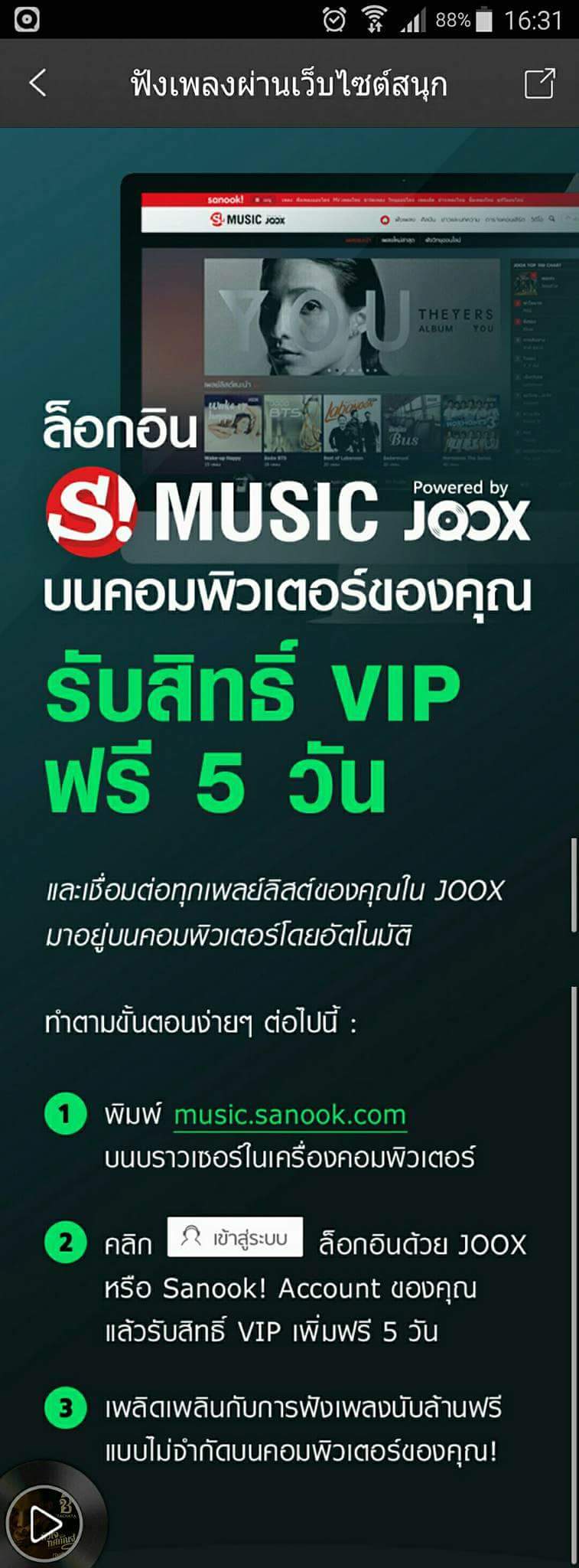 มีใครเคยล็อกอินJOOXผ่านคอมเพื่อเอา VIP ฟรีแล้วทำได้บ้างครับ