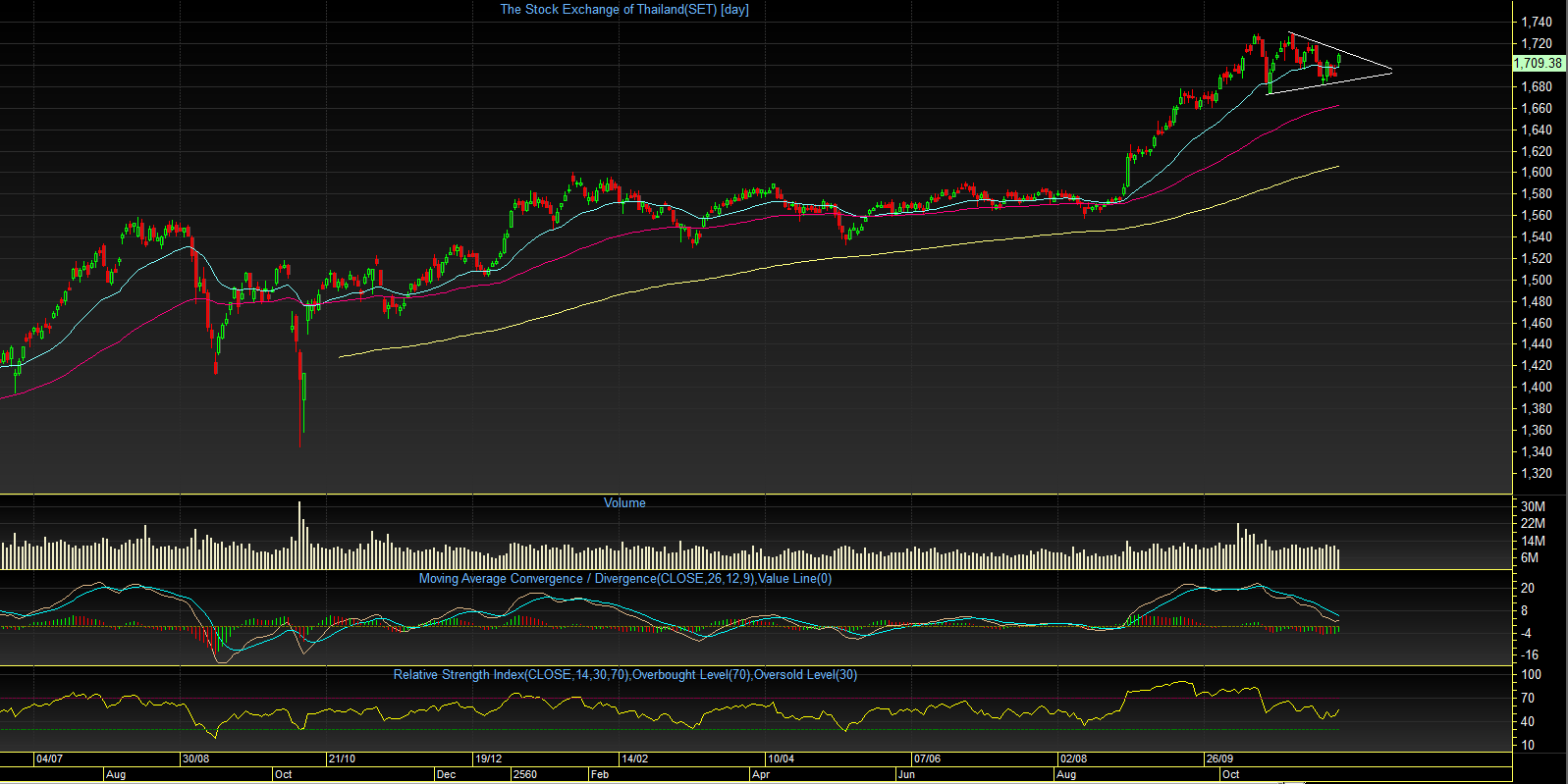 "Symemtrical Triangle" หากวันนี้ ดัชนีสามารถ Breakout ทะลุผ่านขึ้นไปได้ ก็มีโอกาสที่จะเห็น New High อีกครั้ง