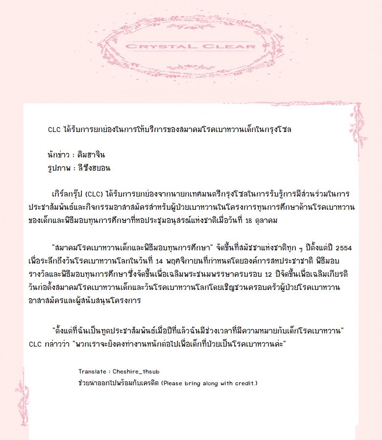 K-POP CLC ได้รับการยกย่องในการให้บริการของสมาคมโรคเบาหวานเด็ก 😇