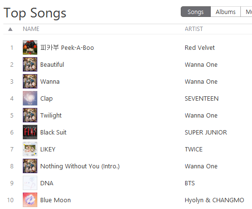 [K-POP] รายงานชาร์ต Top 10 K-POP Songs Apple Music & iTunes Store Thailand (20-Nov-17)