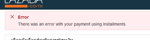 เมื่อวันที่ 17 พ.ย. ที่ผ่านมา ผมได้การทำการซั่งซื้อสินค้าเป็นโทรศัพท์มือถือ Samsung Galaxy Note 8 จากทาง Lazada โดยเลือกชำระแบบผ่อน 0% 10 เดือน แต่ในการทำรายการ ไม่สามารถทำรายการได้สำเร็จ ระบบแจ้ง Error ตามนี้ครับ