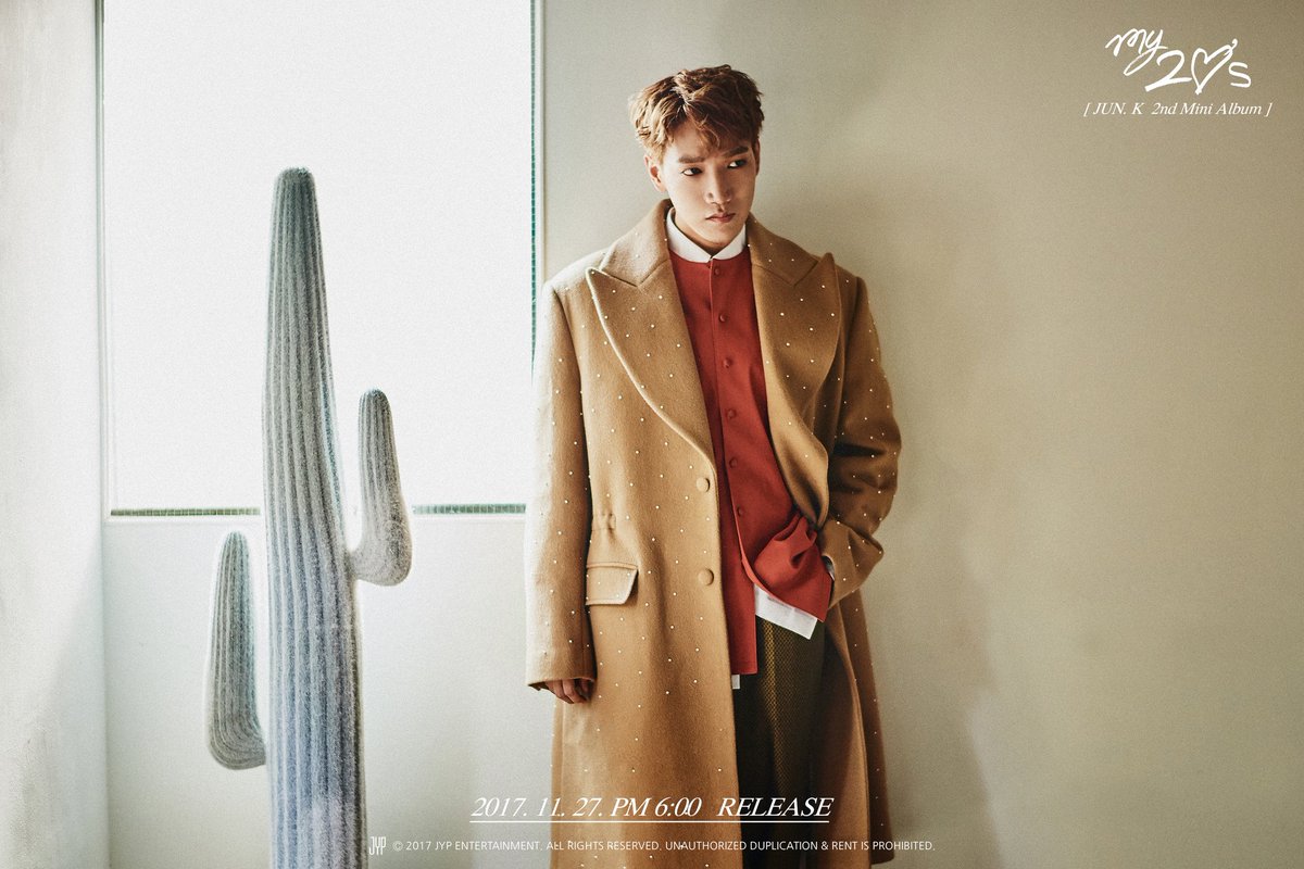 JUN. K 2nd Mini Album - 나의 20대 (My 20’s) Scheduler https://fans.jype.com/BoardView?BoardName=2PM_Notice&Num=276 2017. 11. 27 PM 6:00 http://2PM.jype.com