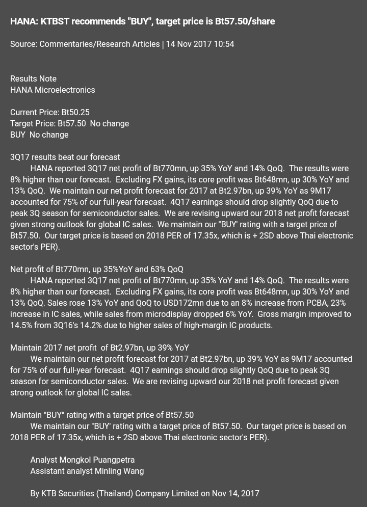 ผู้จัดการกองทุนฝรั่ง เขาคุยอะไรกันเกี่ยวกับ HANA ครับ อ่านแต่ "Buy Buy Buy"
