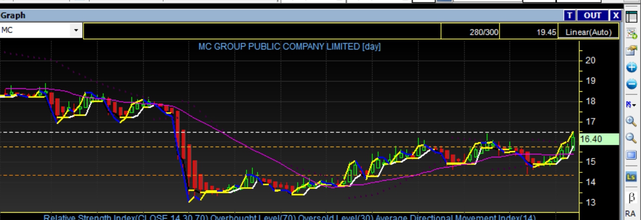 สวัสดี ห้องสินธร พึงได้มาดูกราฟ หลังจาก เข้าเก็บ MC ตั่งแต่เขาไม่ลงต่ำกว่า14. เข้าจะขายไว้ที17.30 หรือไม่ก็ 17.10ก็ขาย!!