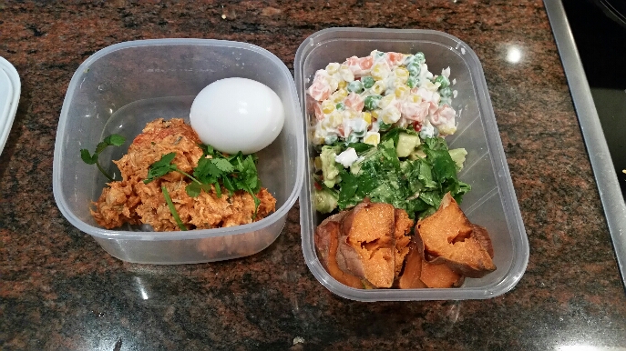 หรือถ้าเป็นเป็นอาหารไทย หุงข้าวไว้ตอนกลางคืน + ทำแกงง่ายๆ ( เครื่องแกงคั่วกลิ้ง + กะทิ +ทูน่ากระป๋อง ) กินกับไข่ต้มกับผักลวก..บางทีเราก็ทำข้าวผัดง่ายๆใส่กล่องไปกิน