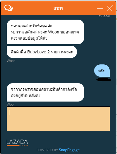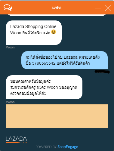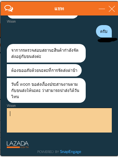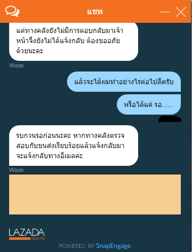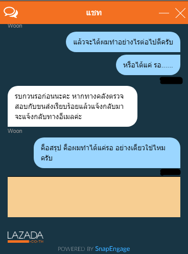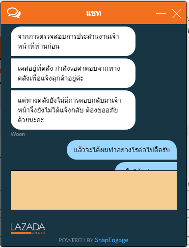 สุดท้ายผมก็ตามเรื่องไปที่ ระบบ Chat อีกครั้ง โดยคุณ Woon ได้รับเรื่องไว้ และจะรีบตามให้