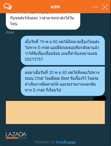 และต่อมาเมื่อวันที่ 20 พ.ย.60 ผมได้ติดต่อไปทางระบบ Chat โดยมีคุณ Best รับเรื่องไว้ โดยจะดำเนินการติดตามให้ และจะรายงานผลกลับทาง E-mail ก็เงียบหายไป