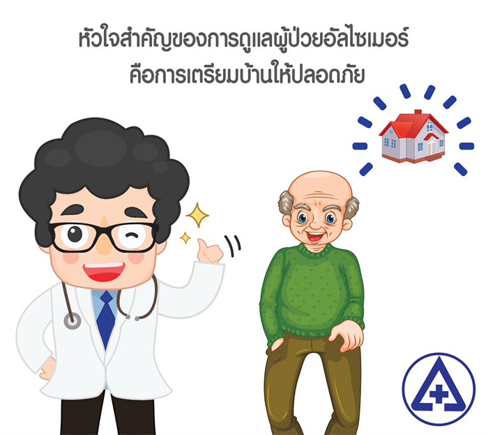 สำคัญของการดูแลผู้ป่วยอัลไซเมอร์ที่บ้าน คือการเตรียมบ้านให้ปลอดภัยเนื่องจากผู้ป่วยอัลไซเมอร์จะมีความจำแย่ลงไปเรื่อยๆ ในระยะ