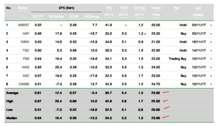 ราคาประเมิน ของแต่ละโบรค (Consensus)