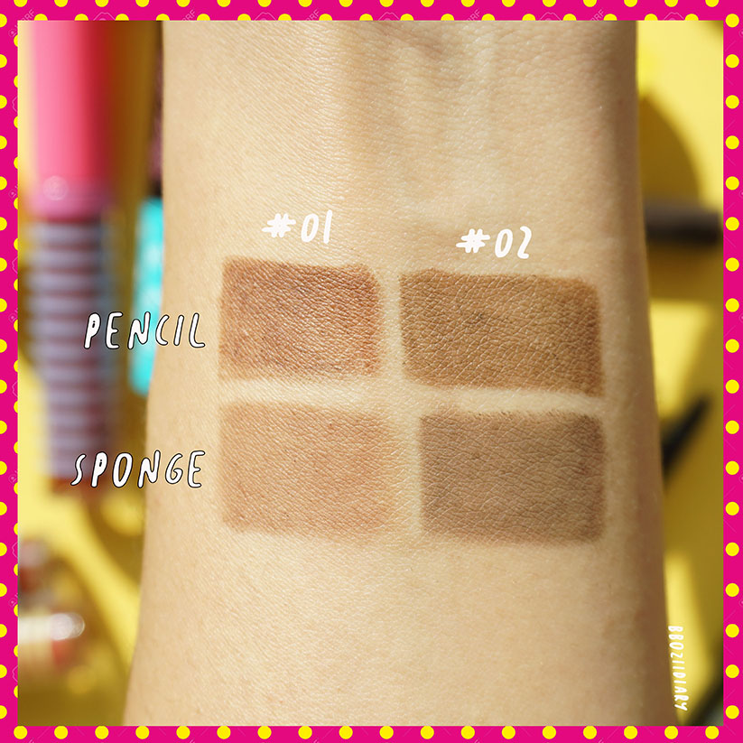 ราคา 199 บาท มี2 สี 01 และ 02 ออกแบบมาสองด้าน ด้านแรกเป็นดินสอแบบออโต้ หมุนมือ อีกด้านเป็นหัวฟองน้ำไว้เกลี่ยนให้